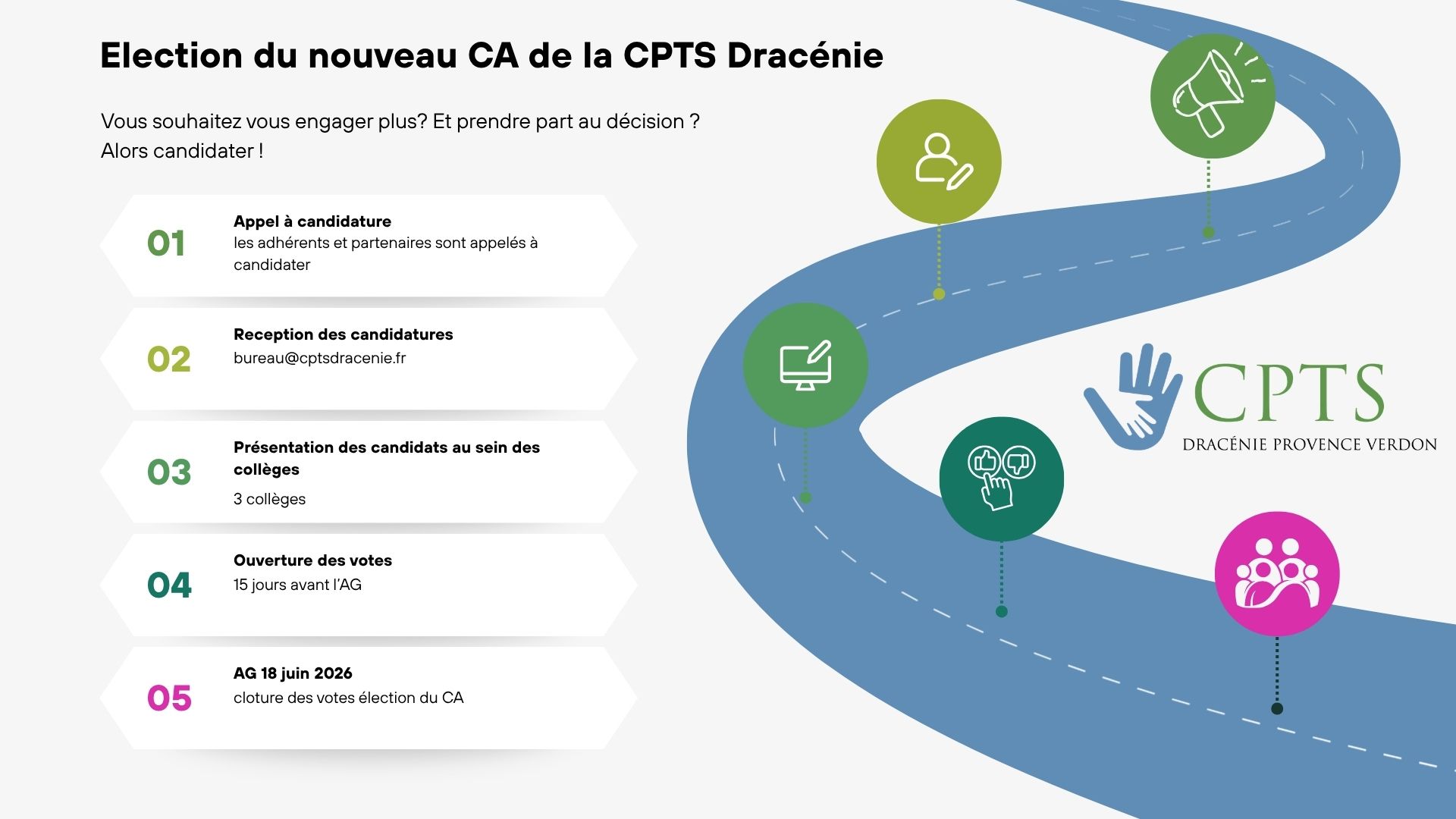- Concrètement, le CA :définit les grandes orientations et priorités de la CPTS, valide les projets et actions à mettre en œuvre,